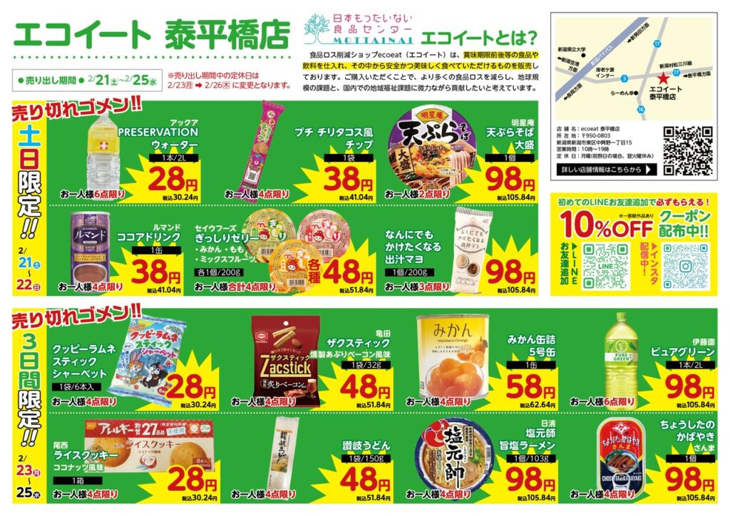 2月23日(月祝)24日(火)はチラシ期間の為、通常営業致します